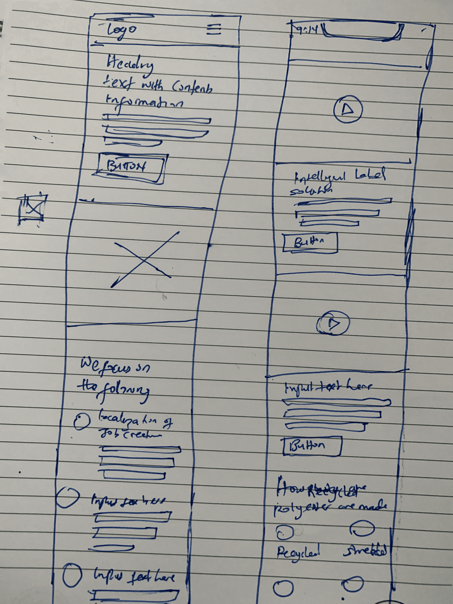 I created low-Fi sketches and wireframes as a means to communicate my ideas. This visual design illustrates the layout of the web experience. Here is a rough sketch and a preview of the mobile wireframe. You can view it on the figma file for a better view.