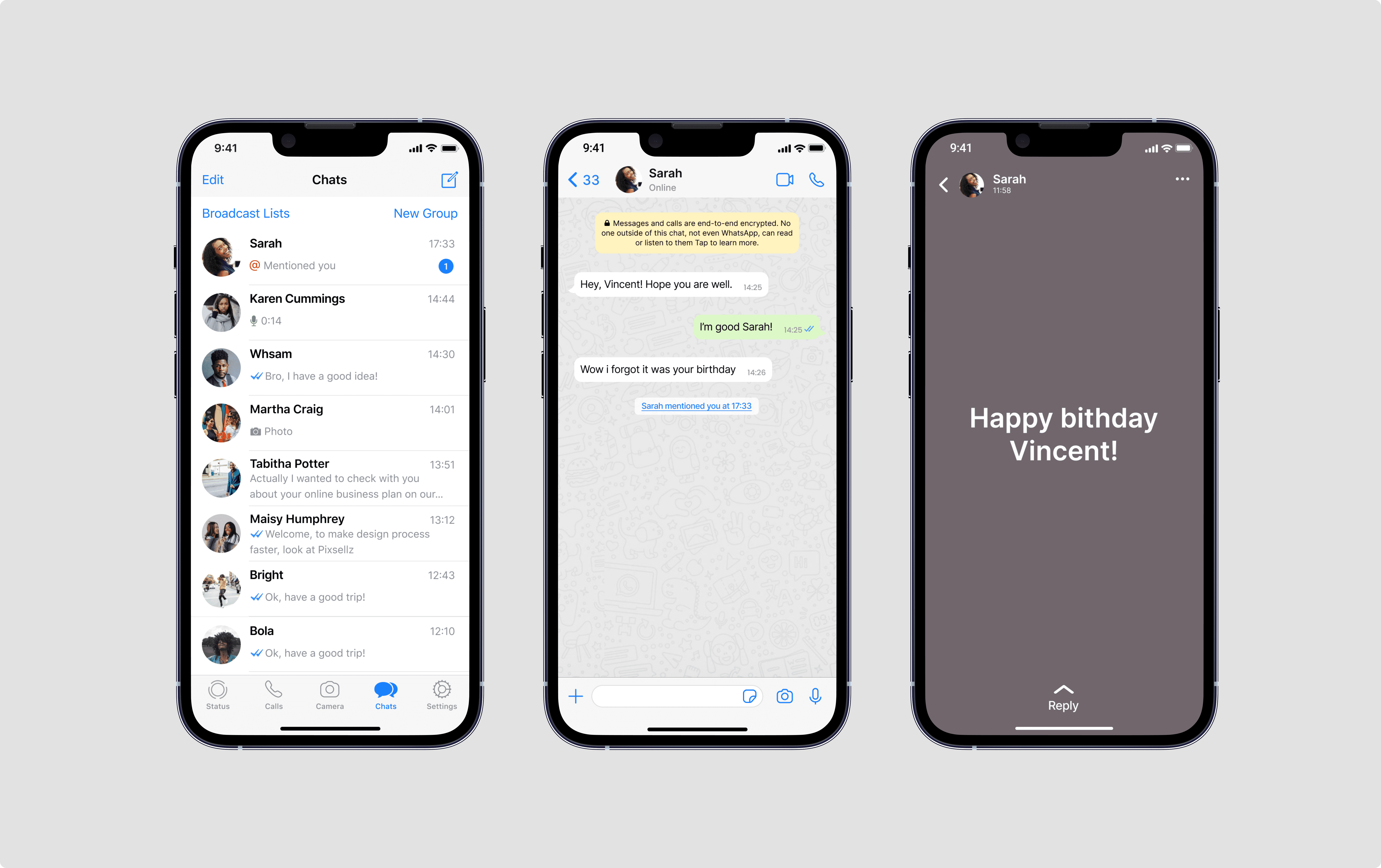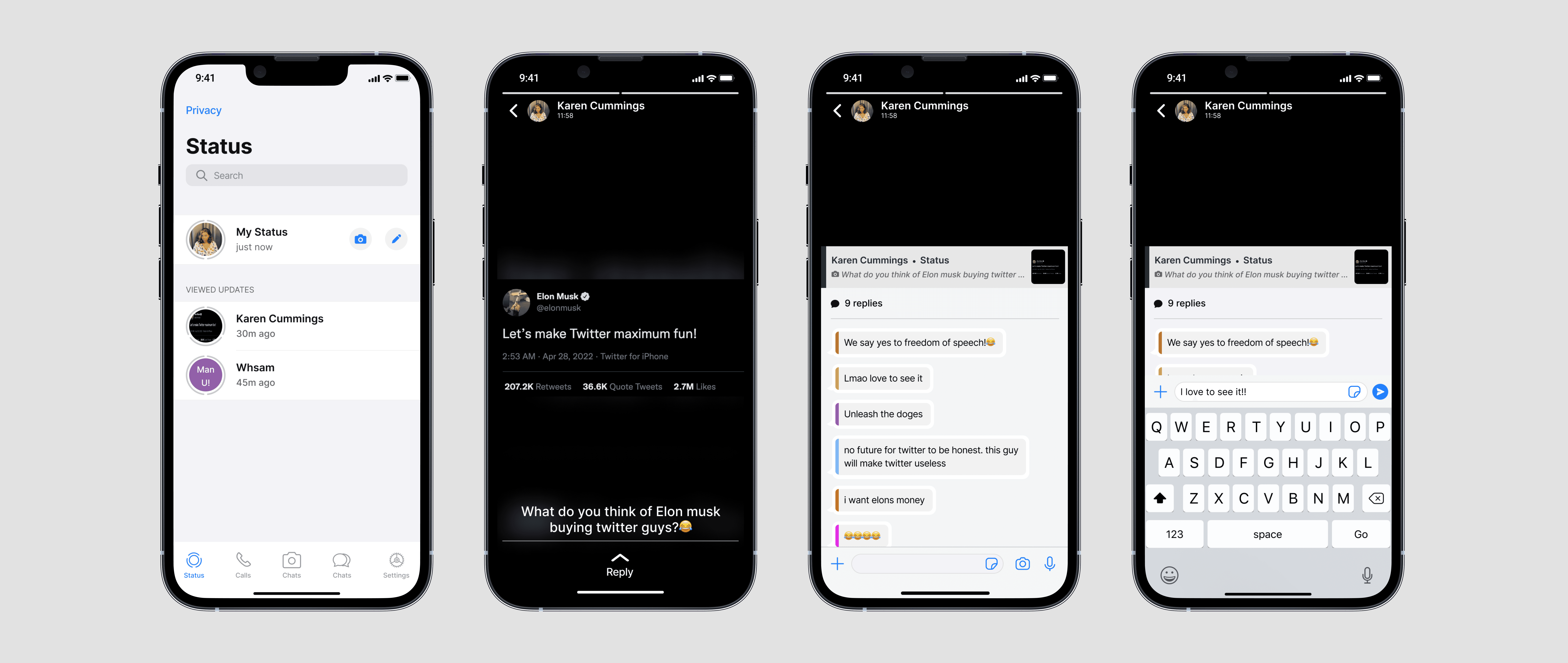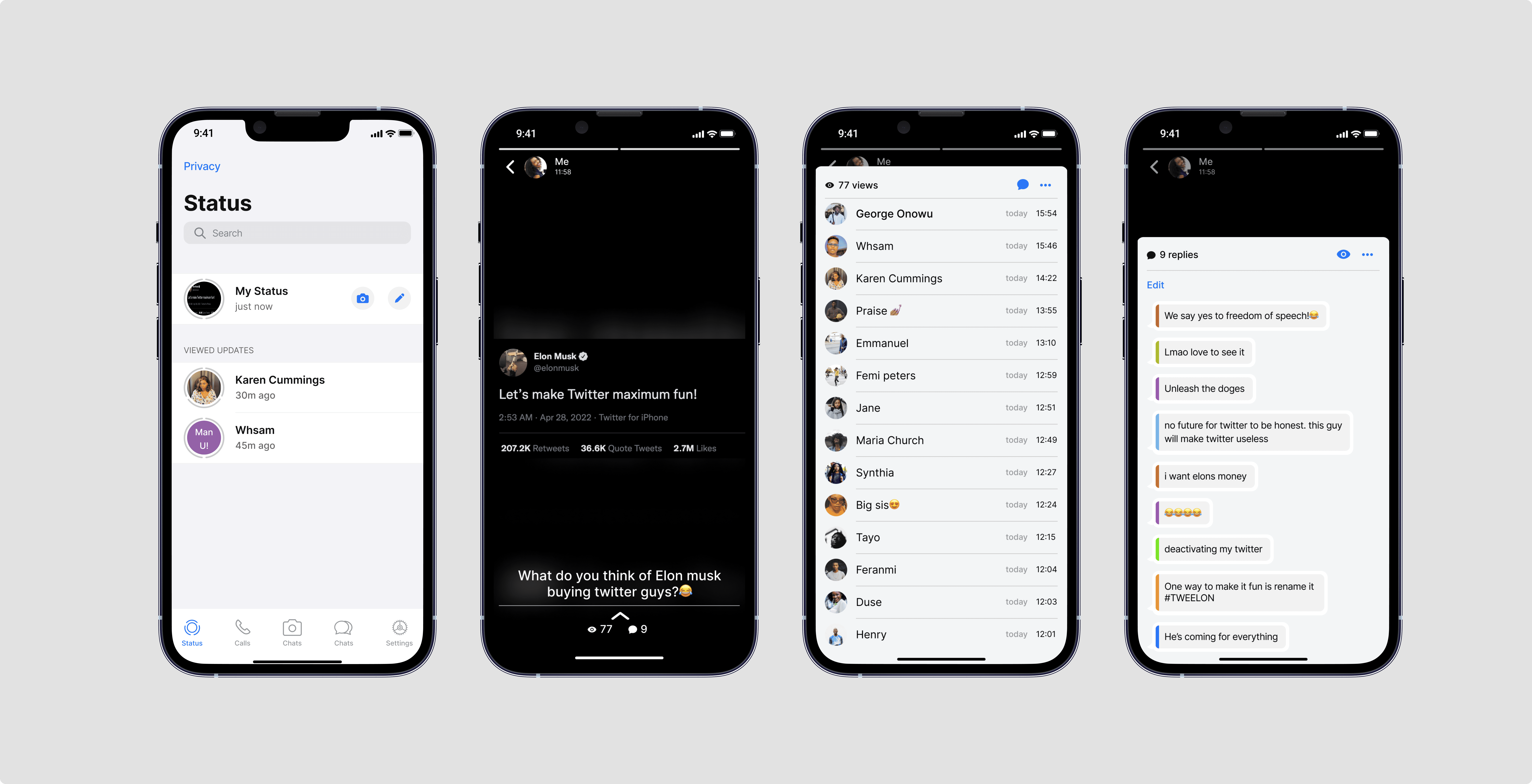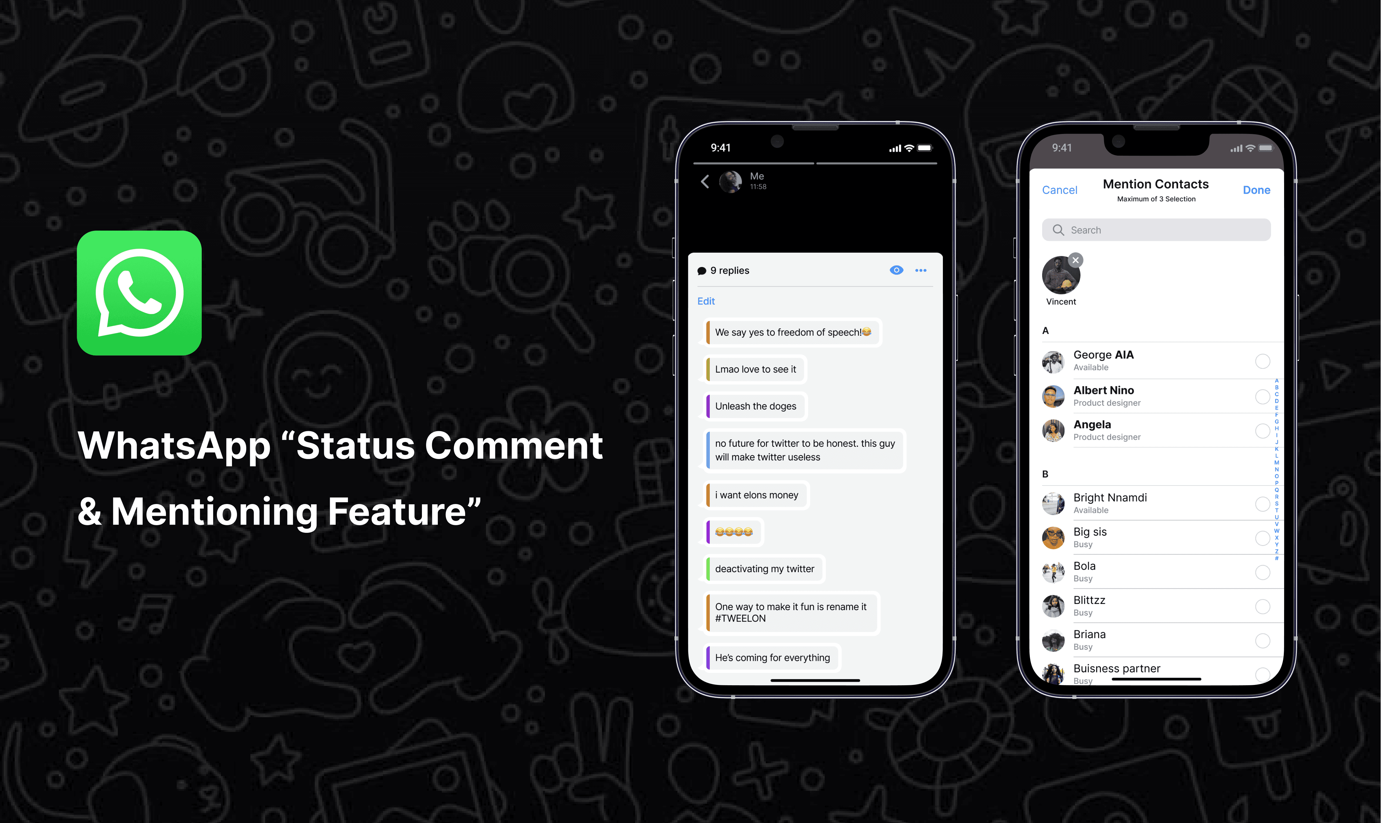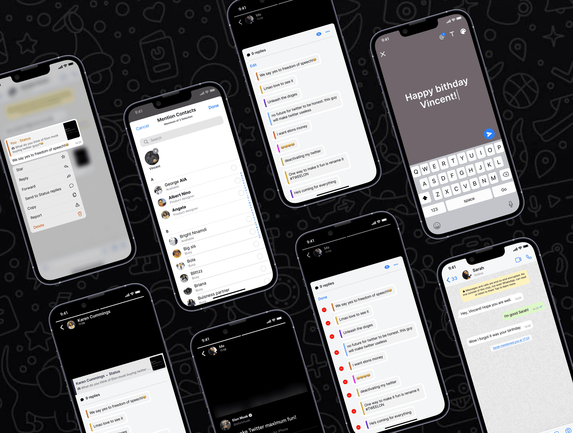 The main goal is to create a unique experience for users trying to share their status replies to their status and allow users to mention contacts.