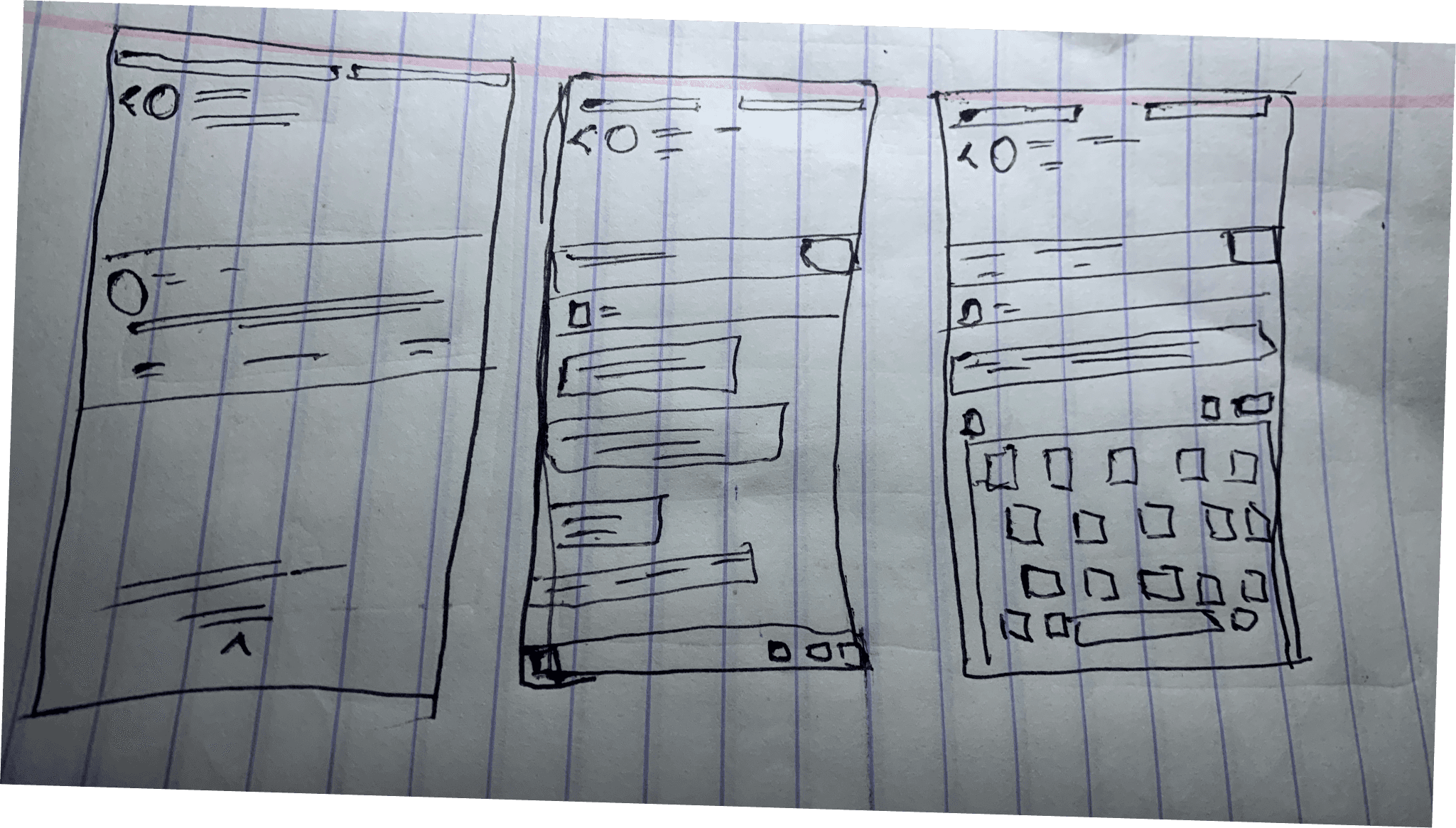 I created low-Fi designs as a means to communicate my ideas. This visual design illustrates the layout of the mobile app